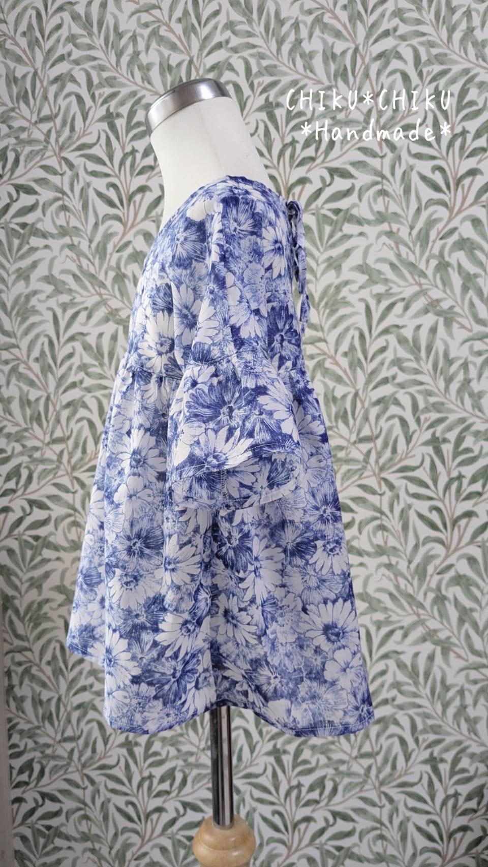 上品な花柄が施されており、首元には後ろリボンがアクセントに。おしゃれでありながら、動きやすさも考慮された一着です。普段使いから特別なお出かけまで、幅広いシーンで活躍すること間違いなし!