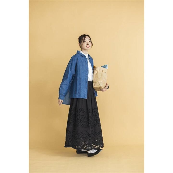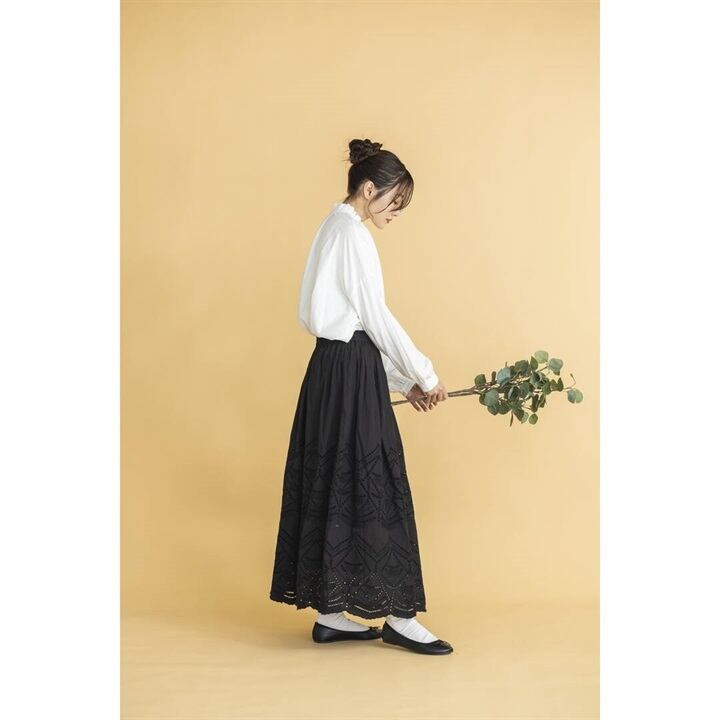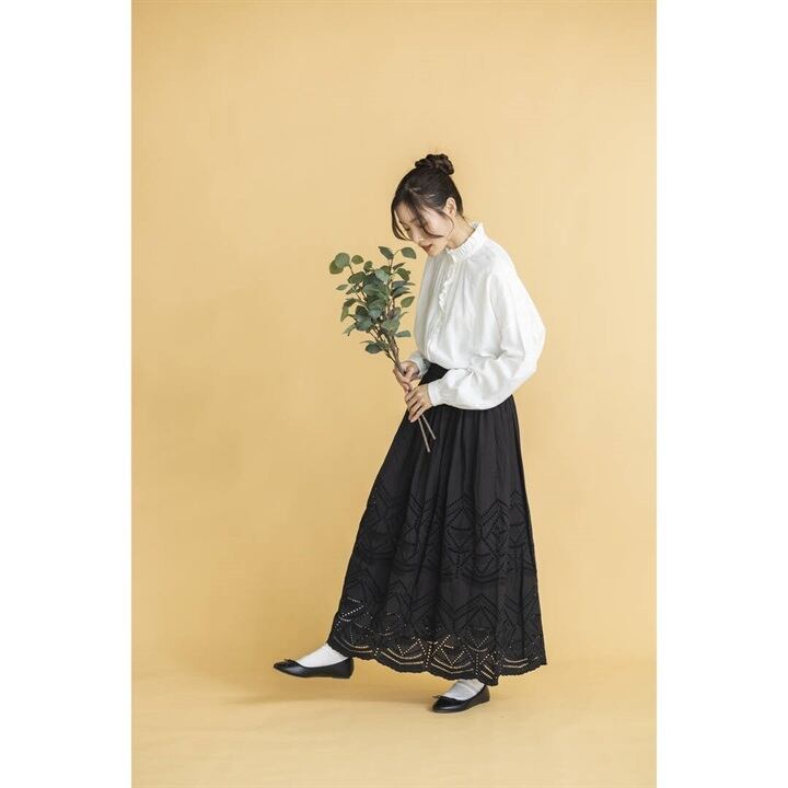 おしゃれで軽やかなスカラップ刺繍スカートが新たに登場!フリーサイズで、さまざまなコーディネートにぴったりなデザインが魅力です。総丈92cm、ウエスト平置き35cmのシルエットは、リラックスした着心地を実現し、幅広い体型の方にフィットします。