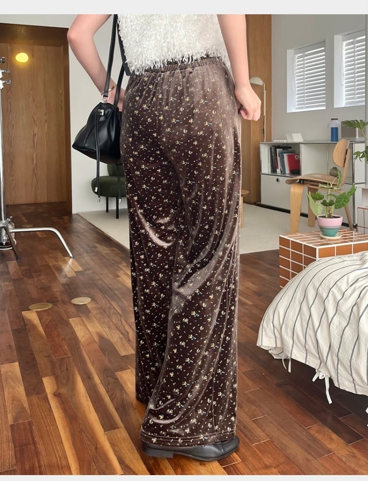 優雅な花柄ベロアパンツで、あなたのスタイルを一層引き立ててください。